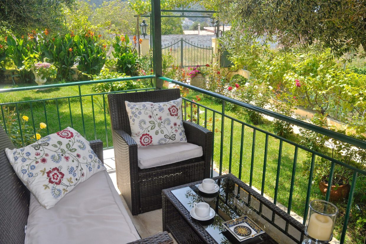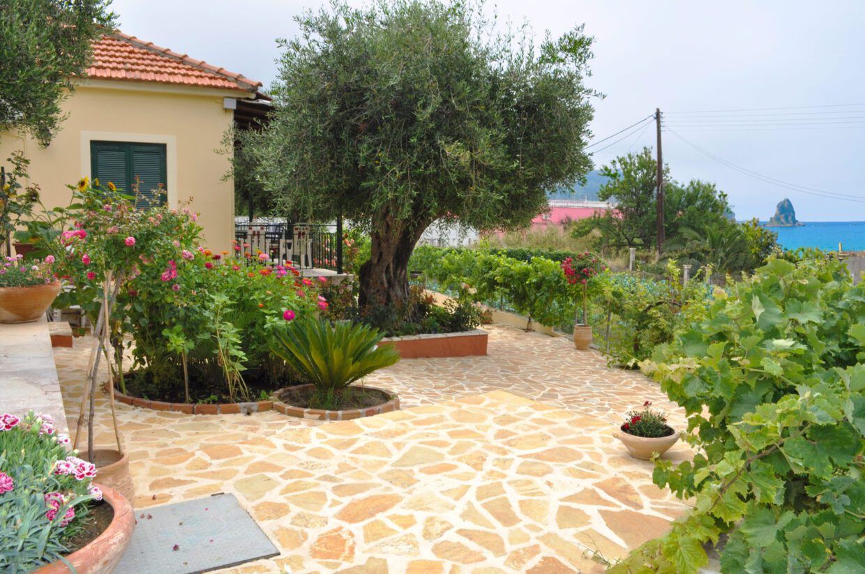Angelos Ferienhäuser bestehen aus 4 Wohneinheiten und befinden sich an der Nordecke der Bucht, in ruhiger Lage, auf einem großen Grundstück mit mediterraner Bepflanzung, nur ca. 50 m von Agios Gordios Sandstrand entfernt.