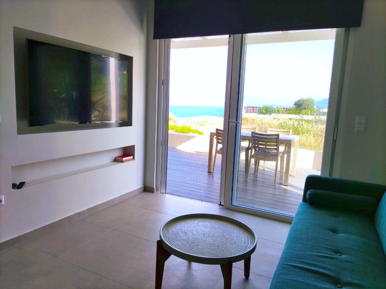 In dieser Gegend gibt es nur wenige private Ferienimmobilien und keine Hotels. Supermärkte, Restaurants, Tavernen und verschiedene Freizeitaktivitäten sind in wenigen Gehminuten erreichbar. Daher ist die Anmietung eines Fahrzeugs nicht zwingend erforderlich.